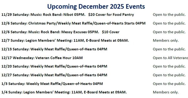 *Open to all veterans, spouses of veterans, members of the American Legion Auxiliary, SAL and Riders.