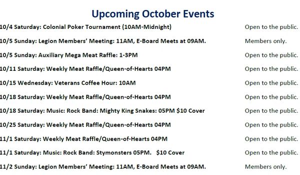 *Open to all veterans, spouses of veterans, members of the American Legion Auxiliary, SAL and Riders.